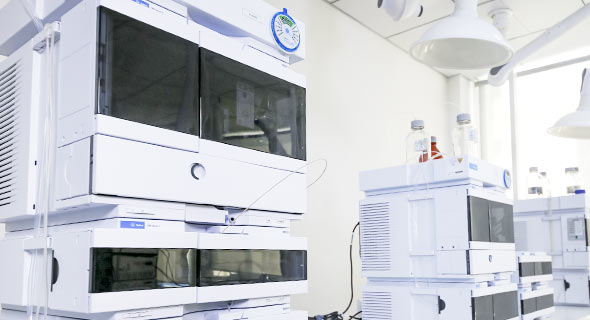 拥有电感耦合等离子体质谱仪(ICP-MS)、液相质谱仪(LC/MS)、液相色谱仪(HPLC)、气相色谱仪(GC)、气质联用仪、氨基酸分析仪、瑞士步琪凯氏定氮仪、水活度测定仪、原子吸收分光光度计、RGF-7800原子荧光分光光度计等先进检测设备,及智能拉力机、顶空气体分析仪等包材检测设备。